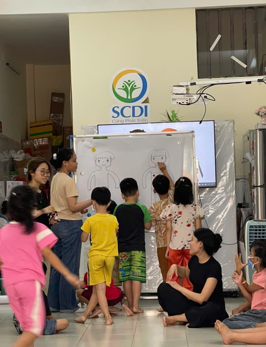 For first and second graders, a session themed "My Body - My Emotions" was held to equip the children with the knowledge to recognize and prevent sexual abuse. This activity not only raised awareness about their own bodies and emotions but also helped them build confidence to share with adults when faced with unsafe situations. The project team utilized creative methods, such as educational animated videos and simple illustrated boards, to make the content easily understandable and memorable for the children.