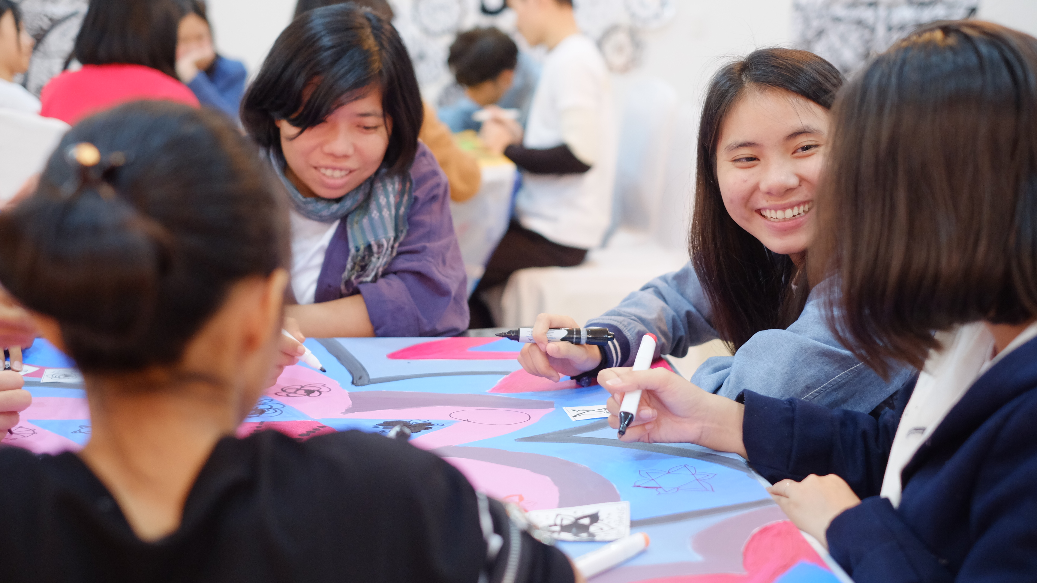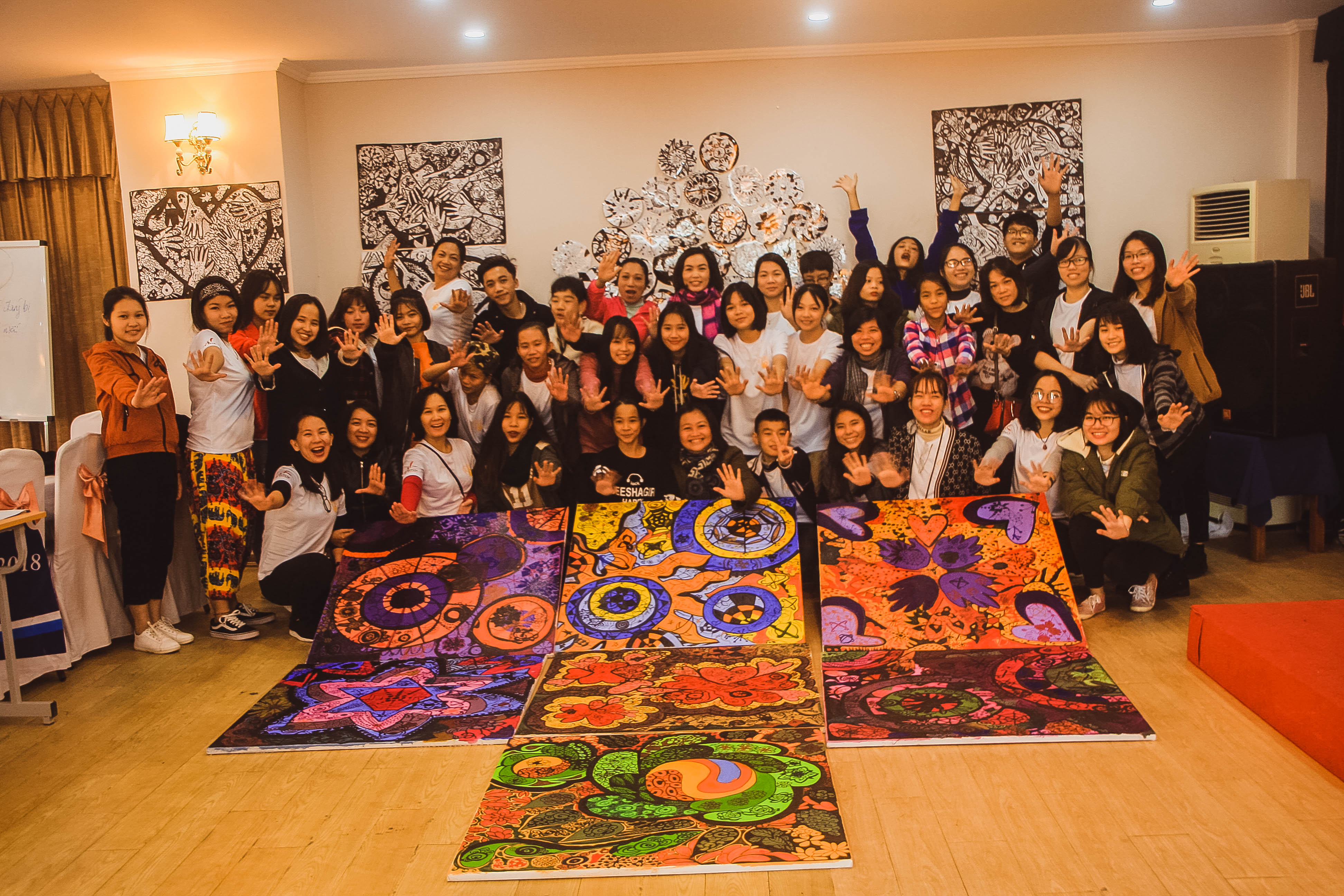 When asked about the most memorable thing in Circle Painting, many members shared that they felt more connected when they were painting and chatting together. The camp also witnessed a lot of surprises when everyone was watching their miraculous works together. From the primitive sketches, the details have been connected, which created extremely vivid pictures. It’s interesting that each picture has a very meaningful message such as "inner peace", "happiness", or "love". Let’s see the colorful images of the "Speak up" camp: