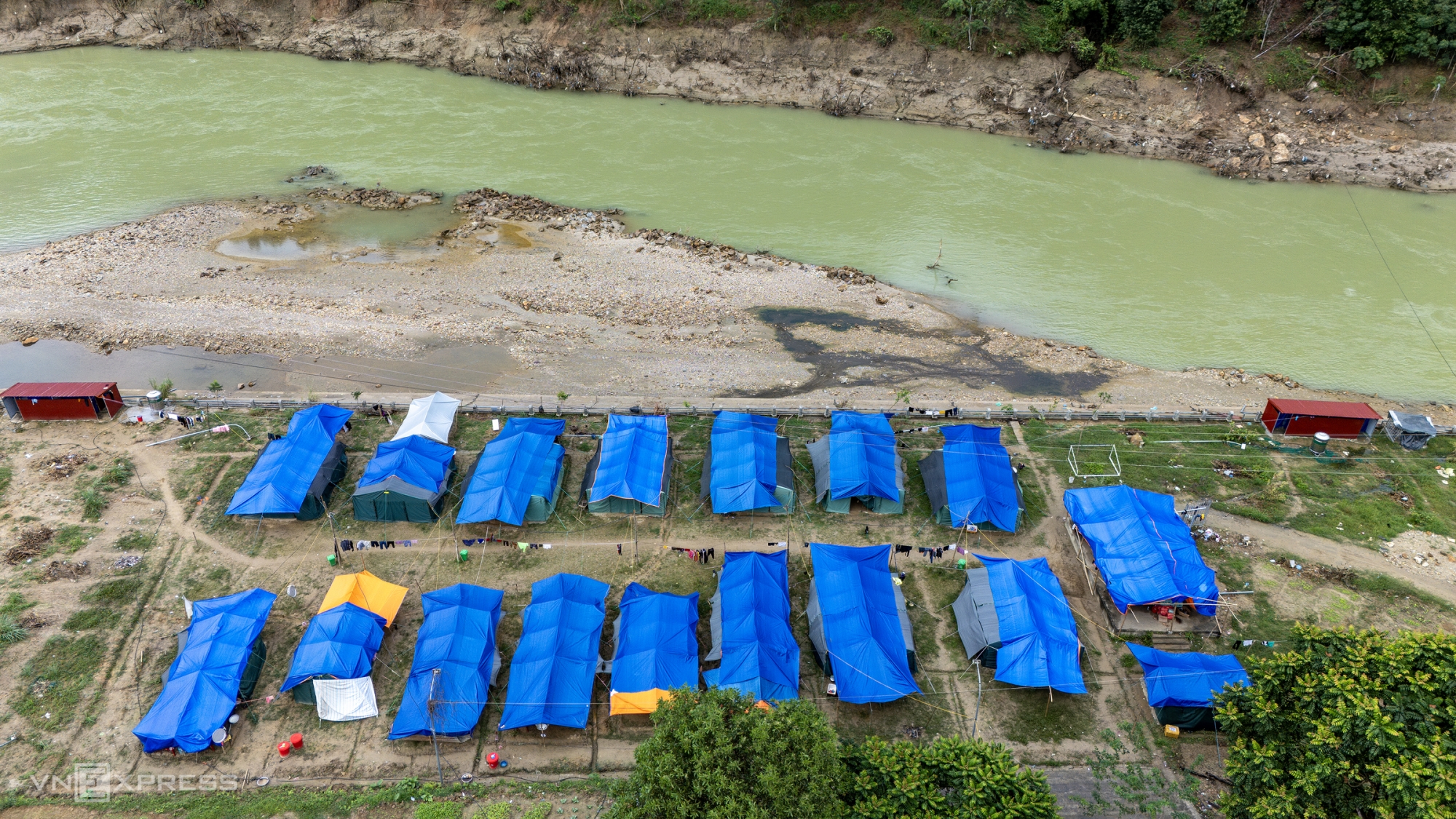 Ảnh: Người dân tại Bắc Hà, Lào Cai ở một khu lán trại sau khi sơ tán do nguy cơ sạt lở