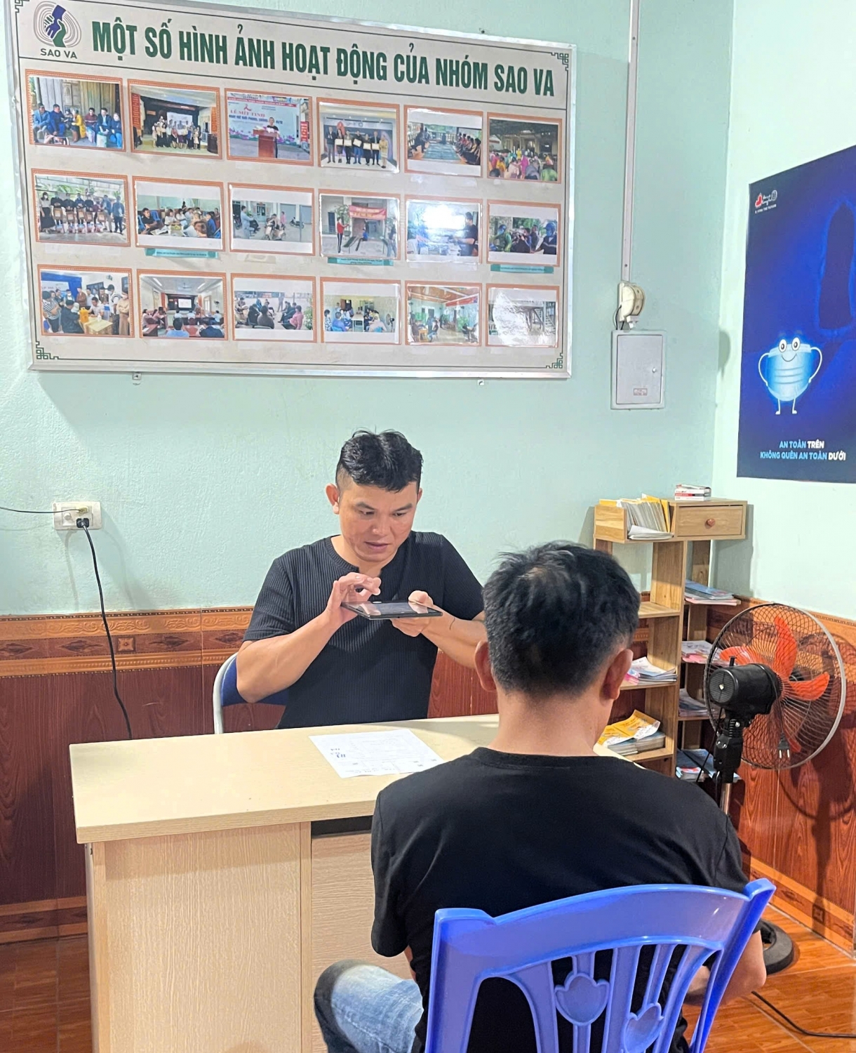 Ảnh: Thành viên nhóm Sao Va triển khai hoạt động khảo sát và xét nghiệm sàng lọc HIV tại văn phòng nhóm.