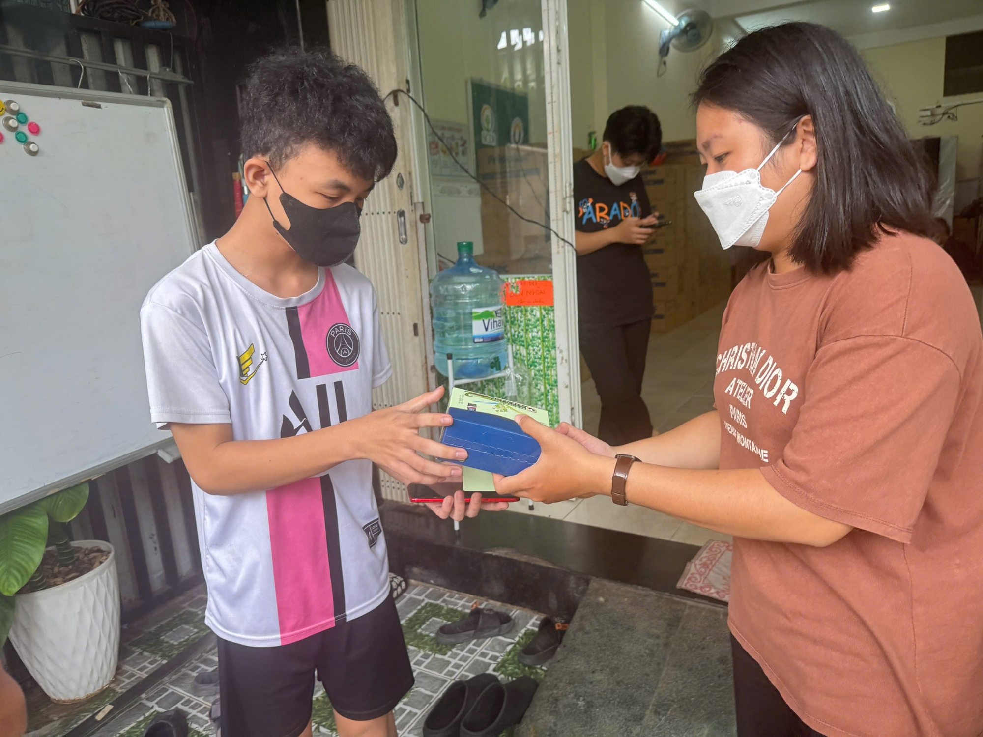 Photo: Milk handed directly to children during the weekly group session at SCDI’s Ho Chi Minh City office