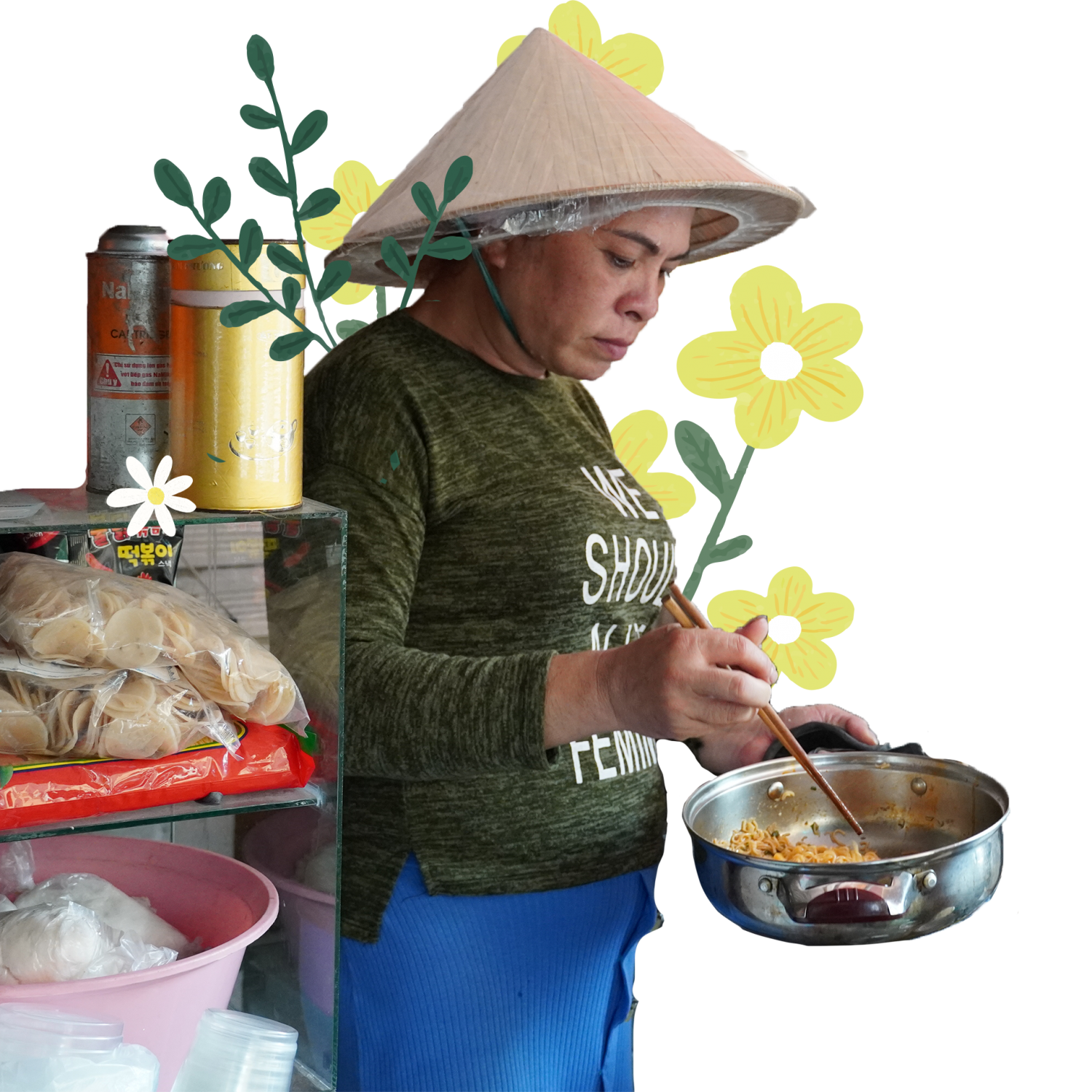 Somewhere along the winding alleyways, blazing sunshine pierces through the leafy streets. Linh and her mother’s house lies on a tiny corner of the sidewalk, surrounded by grocery carts, street vendors, and foam boxes. Old cardboard sheets form a slanted roof, precariously close to tipping which would see the whole structure crumble - inside the heat is intensified by the tarpaulin ‘walls’.“Sit down honey, I'll be done in a few minutes.” Despite her aging years and the lines of hardship etched into her face, she manages a graceful smile.