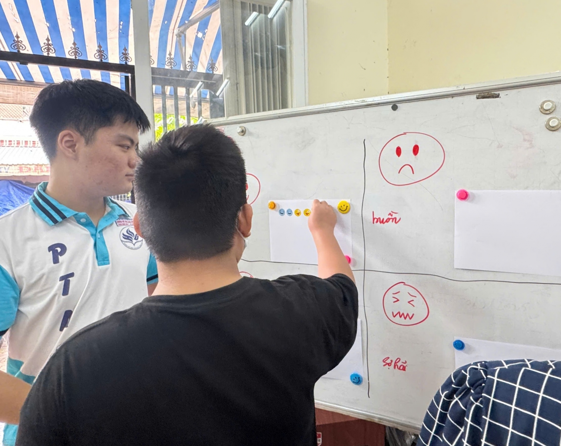 Ảnh: Các em nhỏ lớp 6-7 được tham gia các hoạt động để học cách nhận diện cảm xúc