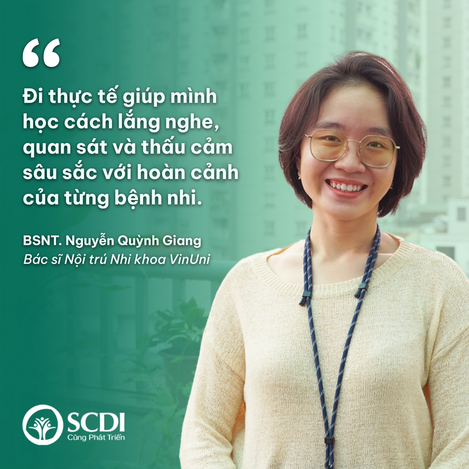 “Bác sĩ nhi khoa là những người phải học cách lắng nghe không chỉ bằng ngôn ngữ mà còn bằng quan sát, cảm nhận và sự thấu hiểu sâu sắc. Thời gian tham gia cùng chương trình Cắt đứt Vòng xoáy chính là cơ hội để mình rèn luyện những kỹ năng ấy.