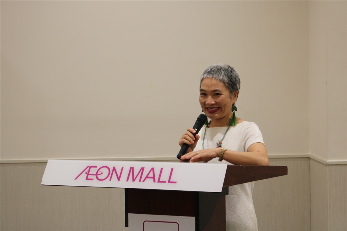 BS. Khuất Thị Hải Oanh, giám đốc Trung tâm Hỗ trợ Sáng kiến Phát triển Cộng đồng (SCDI) có mặt tại buổi lễ đã bày tỏ sự cảm ơn với tình cảm, san sẻ chân thành của khách hàng, đối tác, nhân viên và Tập đoàn AEON.